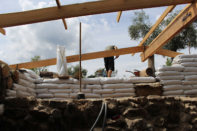 ....so many natural building techniques were employed in the making of this home....earth bags, cord wood, straw bales....